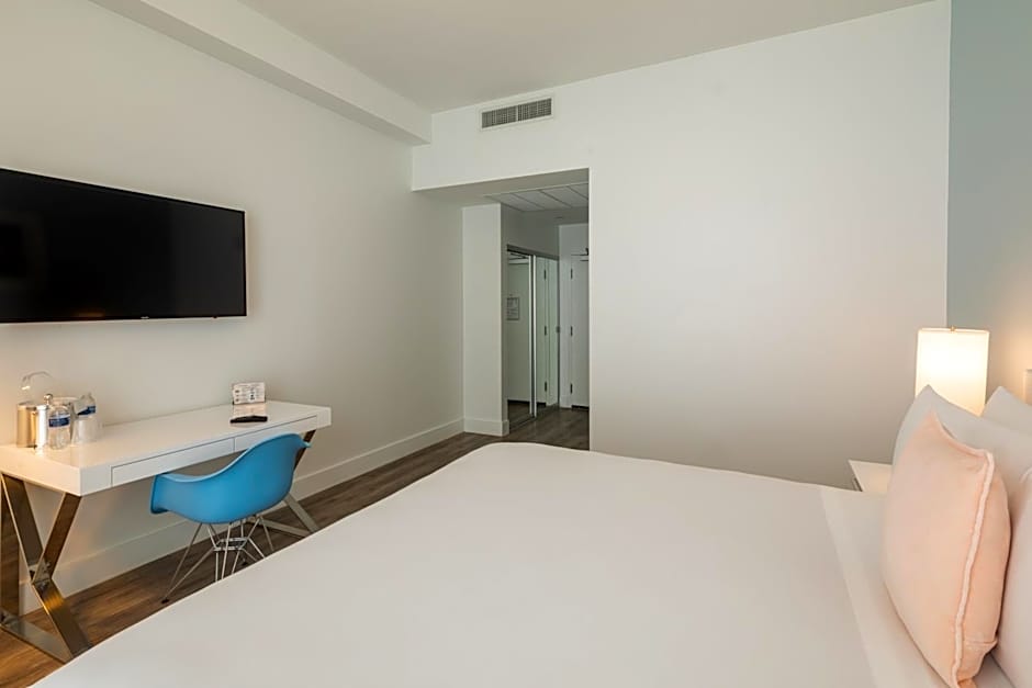 屋外プールは大人専用で、景色を眺めながらリラックスして水遊びを楽しめます。近くにはビーチチェアとラウンジャーがあり、観光後に太陽の光とマイアミの雰囲気を満喫できます。